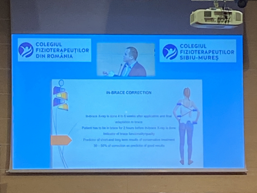La evenimentul organizat de filiala Sibiu-Mureș, am avut ocazia de a asculta prelegeri științifice foarte valoroase din domeniile de interes ale serviciilor noastre: fizioterapia neuropediatrică, fizioterapia scoliozei și al afecțiunilor coloanei vertebrale, cu invitați speciali ca Sara LUETCHFORD (Italia) Fisioterapista, MCSP, OMPT, Dip.MDT, Docente Internazionale McKenzie, Nicola Jevtić MSc (Serbia) International Schroth Instructor, Scolio Center Novi Sad, Jean Pierre MAES (Belgia), MCSP Consultant Neurodevelopmental Physiotherapist, Fondator și Director al M.A.E.S. Therapy International, Dr. Alexandru Thiery (România) Medic primar ortopedie pediatrică, Spitalul Monza București.