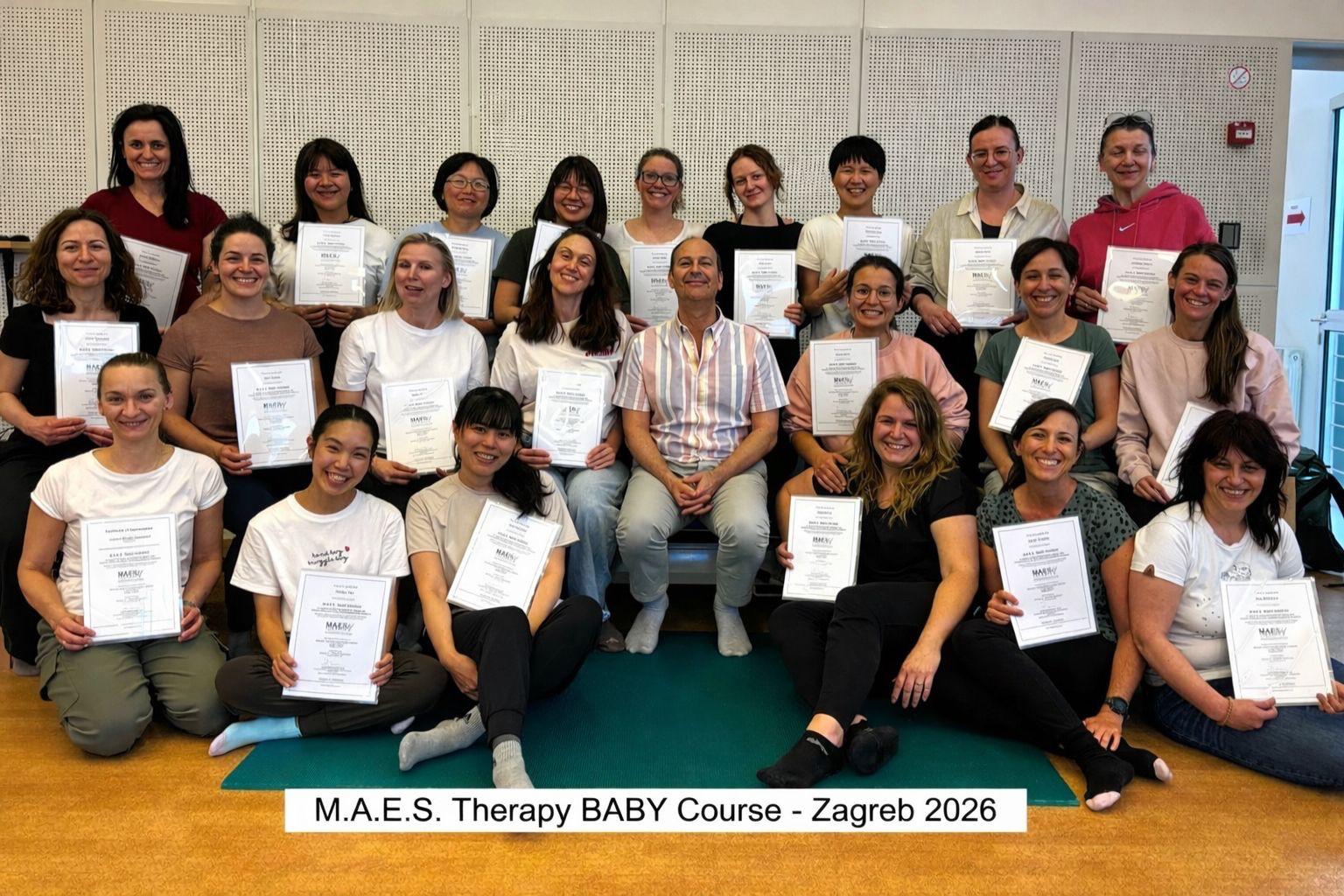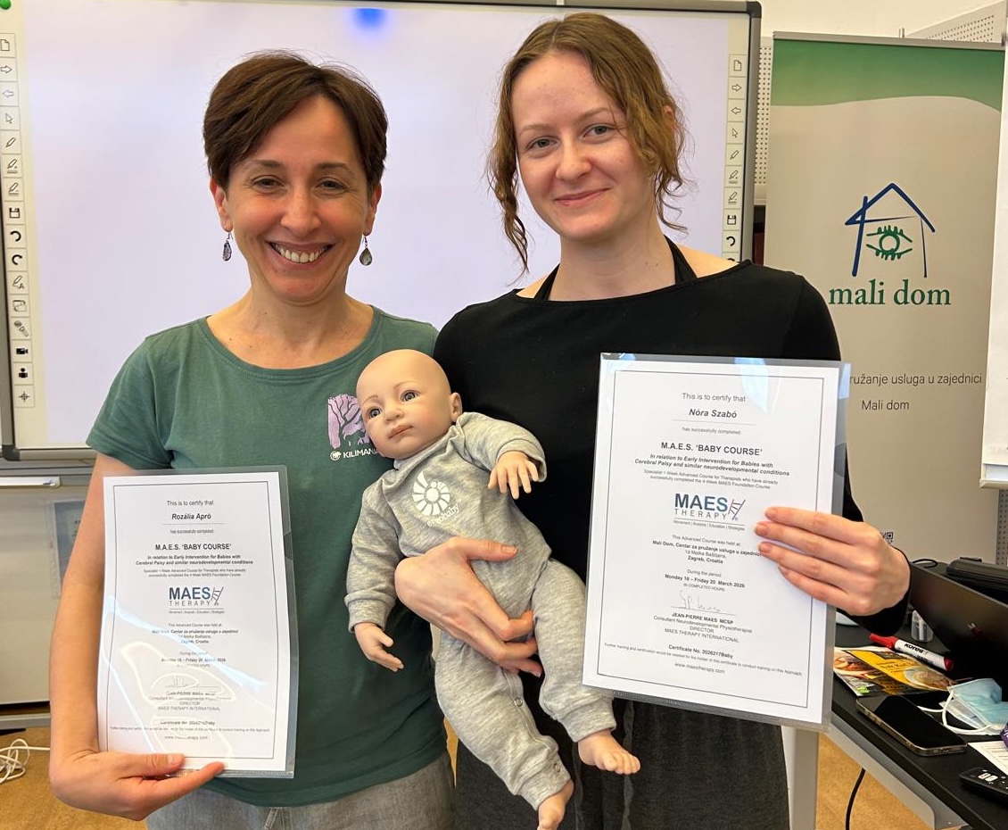 În perioada 16–20 martie, am participat la cursul avansat de specializare în terapia Movement Analysis Educational Strategies (MAES), nivel avansat în tratamentul bebelușilor cu afecțiuni neuromotorii și al bebelușilor cu grad de risc ridicat de a dezvolta paralizie cerebrală în urma unor nașteri premature sau în urma altor condiții care pot duce la apariția unor afecțiuni neuromotorii, desfășurat în Zagreb, Croația, alături de alți 20 de terapeuți, formați în abordarea MAES, din 9 țări.